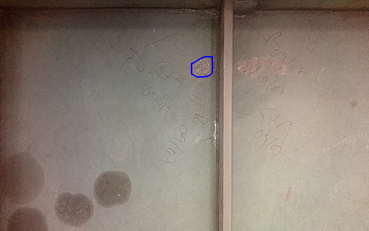 Rayaduras o zonas de metal expuestas con productos de óxido débilmente adherido. |