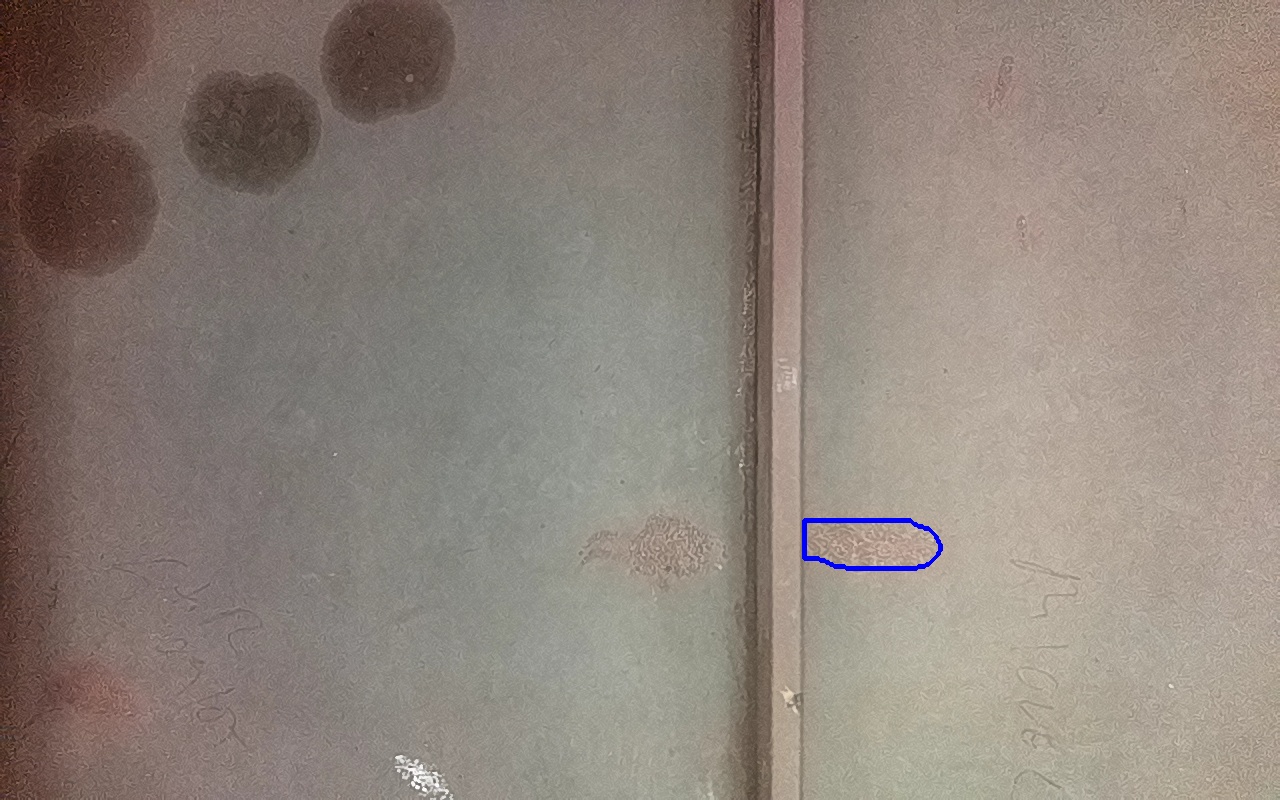 Rayaduras o zonas de metal expuestas con productos de óxido débilmente adherido. |