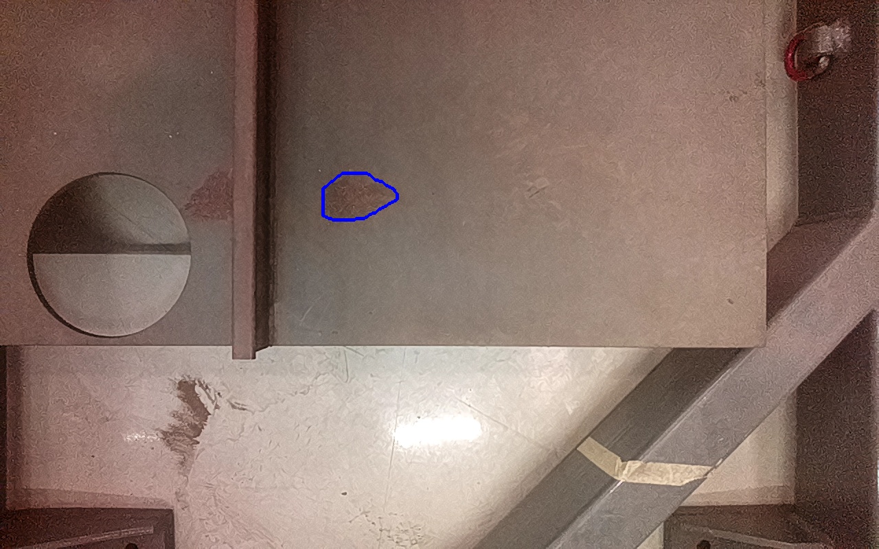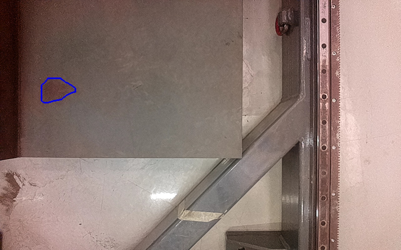 Rayaduras o zonas de metal expuestas con productos de óxido débilmente adherido.