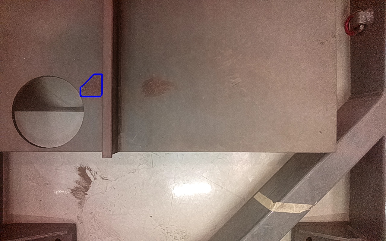 Rayaduras o zonas de metal expuestas con productos de óxido débilmente adherido.