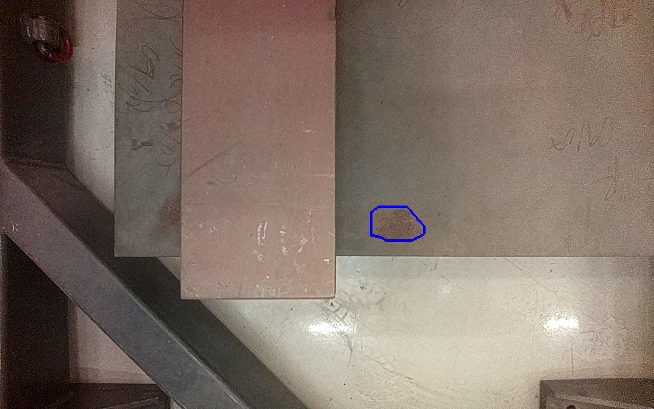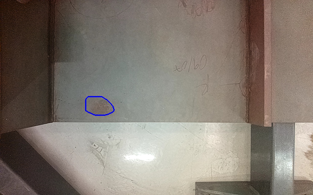 Rayaduras o zonas de metal expuestas con productos de óxido débilmente adherido.