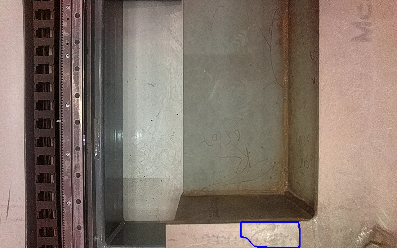 Rayaduras o zonas de metal expuestas con productos de óxido débilmente adherido.