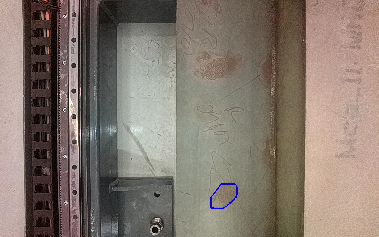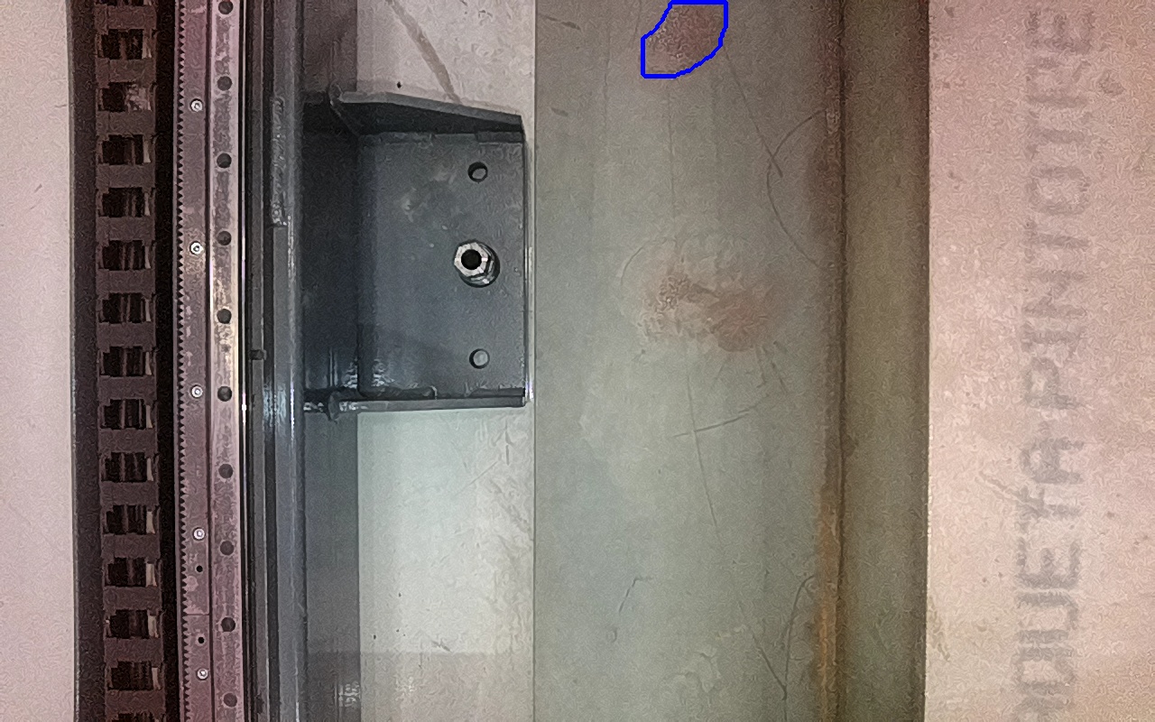 Rayaduras o zonas de metal expuestas con productos de óxido débilmente adherido.