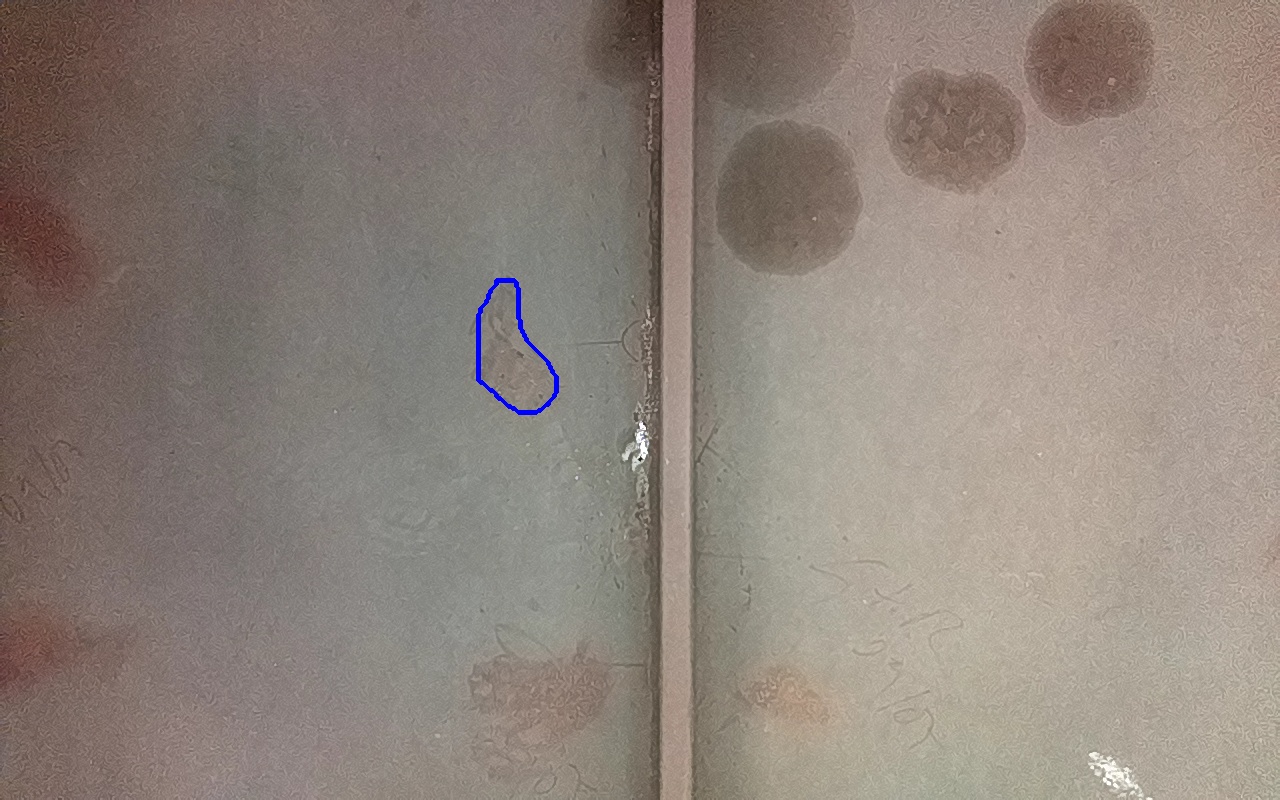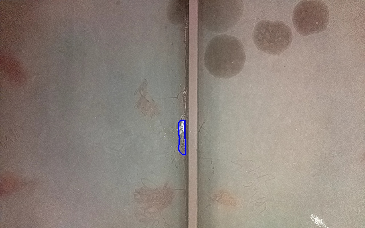 Rayaduras o zonas de metal expuestas con productos de óxido débilmente adherido.