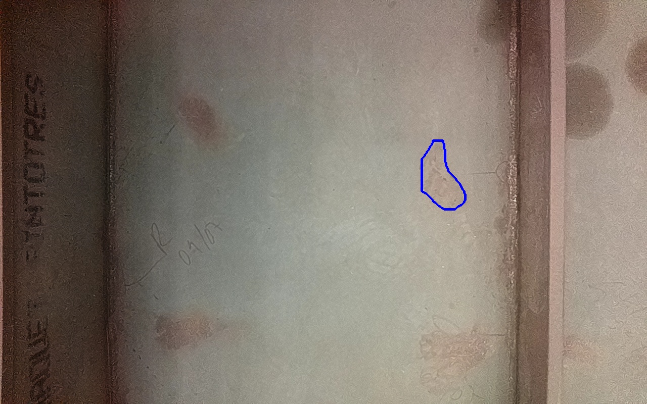 Rayaduras, marcas, daños por impacto, abrasión o zonas de metal expuestas con apariencia metálica y libre de productos de óxido o con trazas firmemente adheridas. |