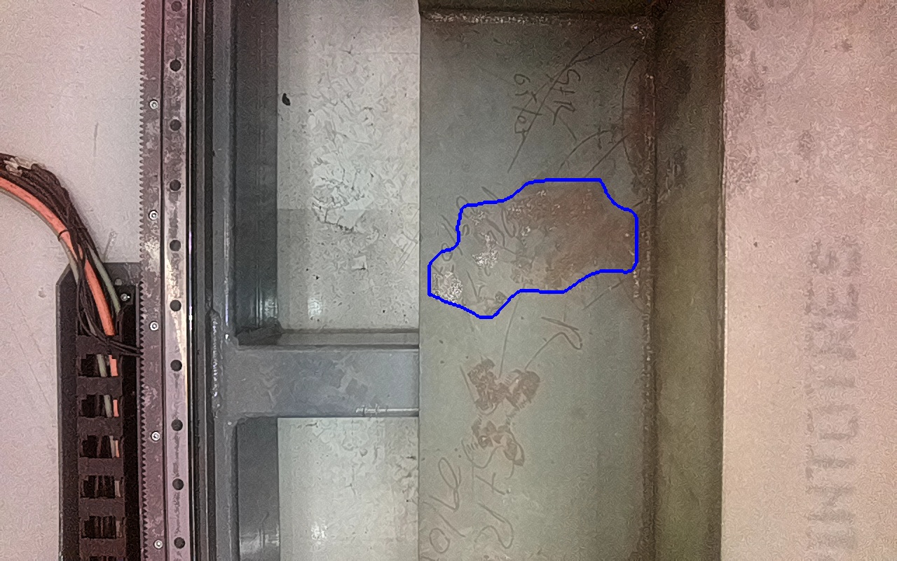 Rayaduras o zonas de metal expuestas con productos de óxido débilmente adherido. |