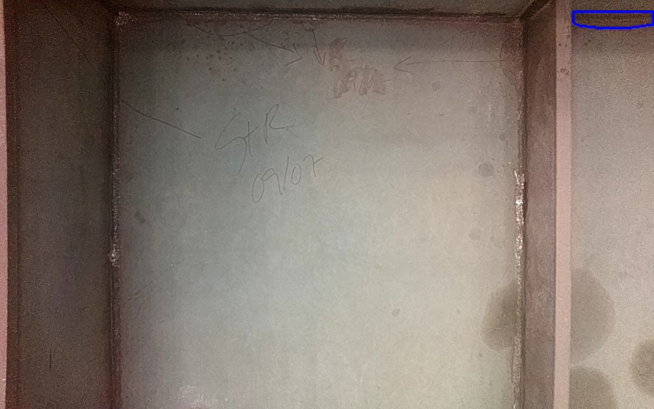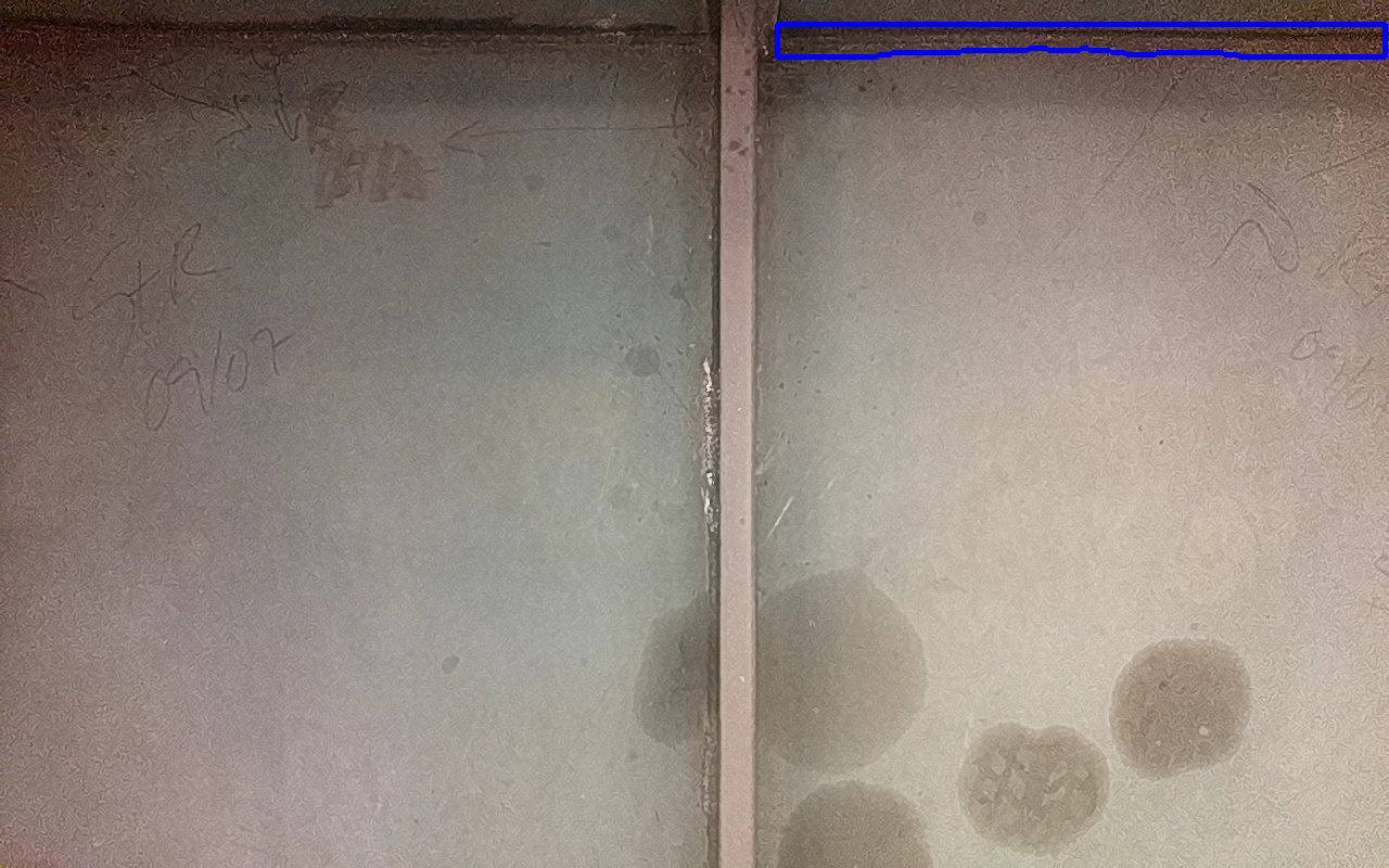 Rayaduras o zonas de metal expuestas con productos de óxido débilmente adherido. |