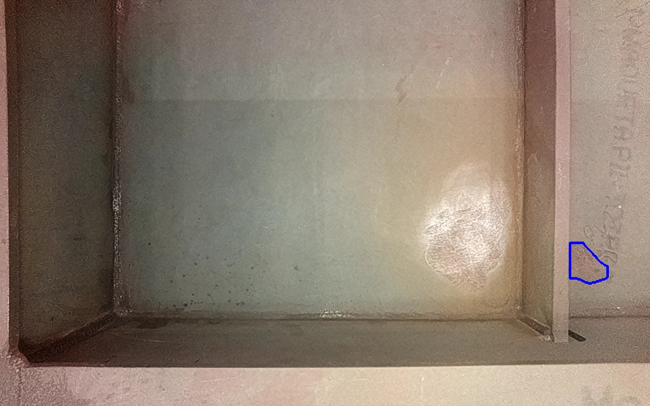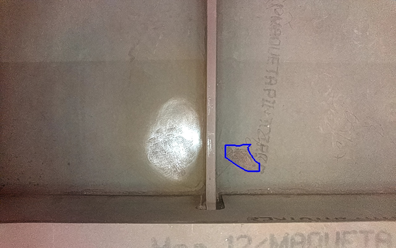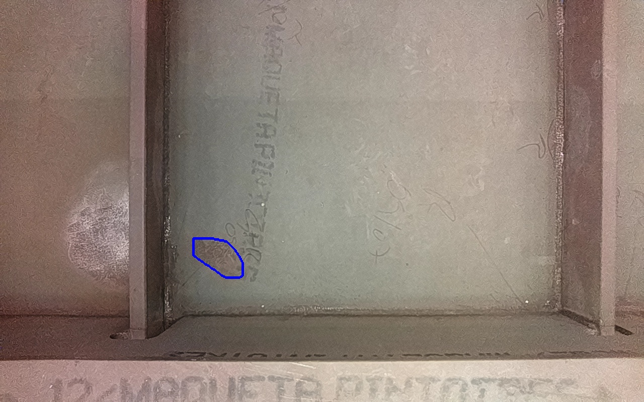 Rayaduras o zonas de metal expuestas con productos de óxido débilmente adherido.