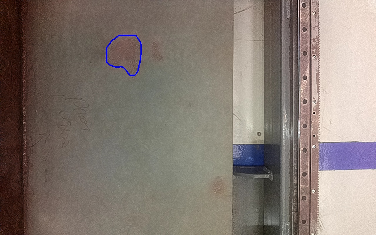 Rayaduras o zonas de metal expuestas con productos de óxido débilmente adherido.