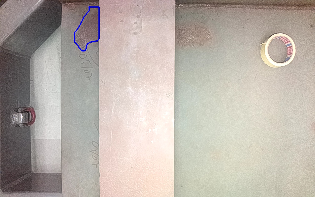 Rayaduras o zonas de metal expuestas con productos de óxido débilmente adherido. |