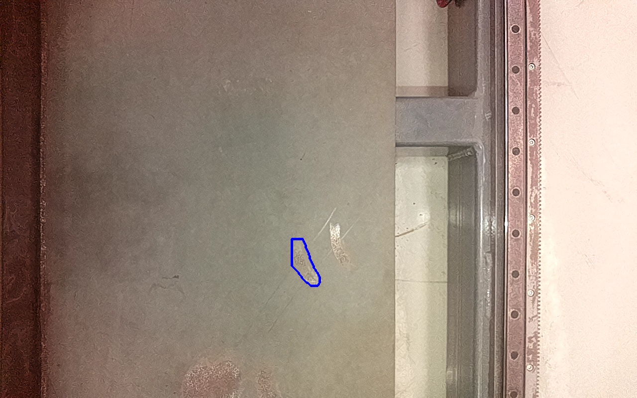 Rayaduras o zonas de metal expuestas con productos de óxido débilmente adherido. |