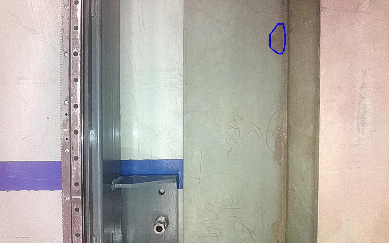Rayaduras o zonas de metal expuestas con productos de óxido débilmente adherido. |