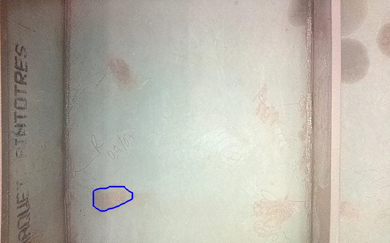 Rayaduras o zonas de metal expuestas con productos de óxido débilmente adherido. |