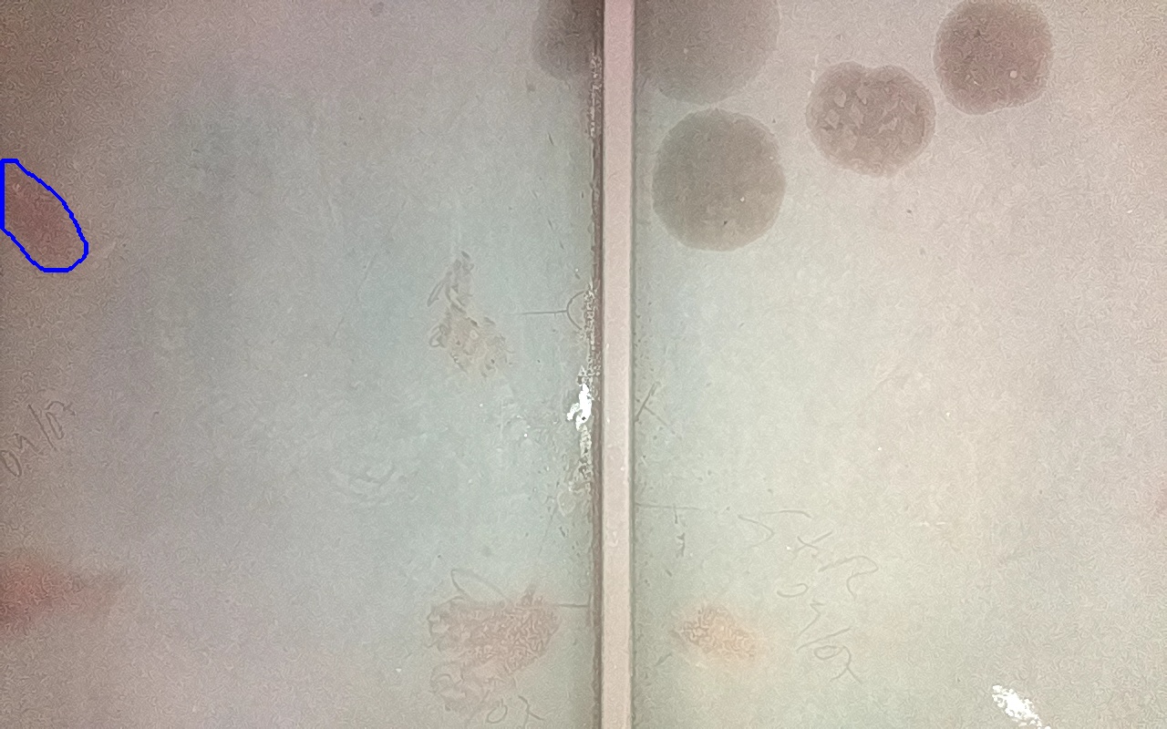 Rayaduras o zonas de metal expuestas con productos de óxido débilmente adherido. |