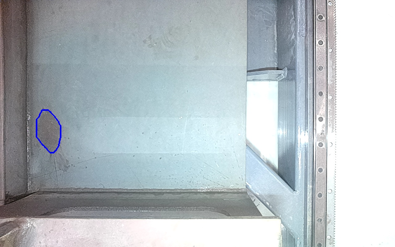 Rayaduras o zonas de metal expuestas con productos de óxido débilmente adherido. |