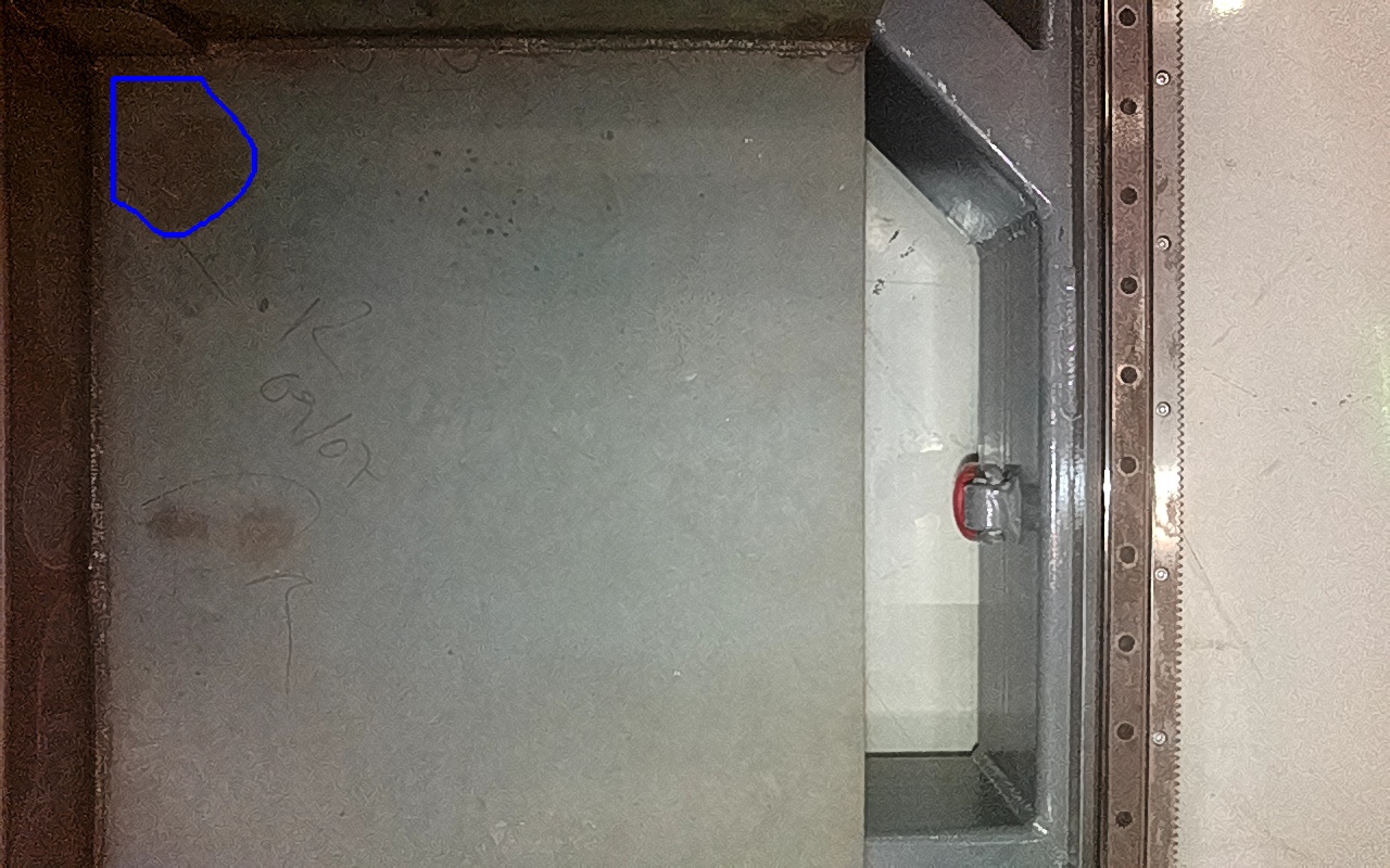Rayaduras o zonas de metal expuestas con productos de óxido débilmente adherido. |