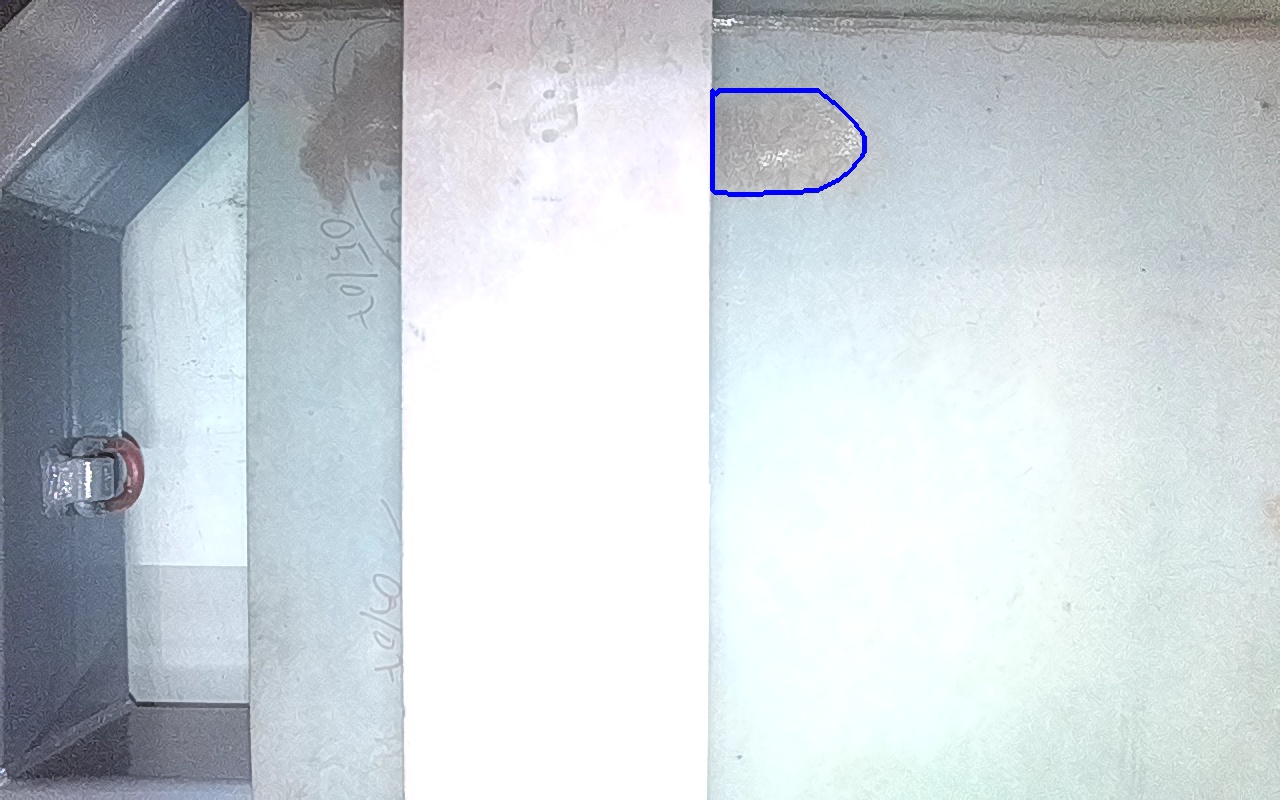Rayaduras o zonas de metal expuestas con productos de óxido débilmente adherido. |