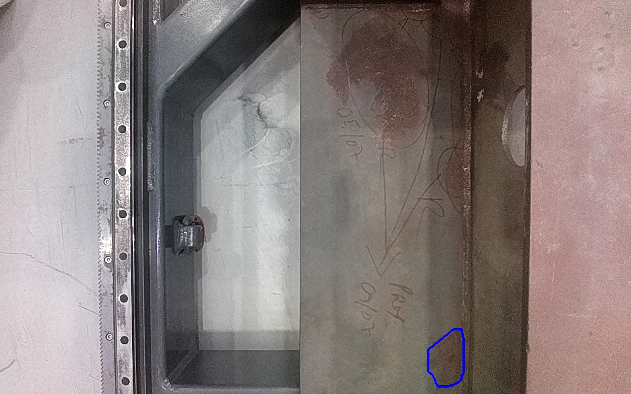 Rayaduras o zonas de metal expuestas con productos de óxido débilmente adherido. |