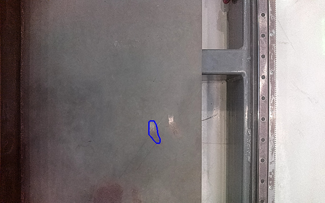 Rayaduras o zonas de metal expuestas con productos de óxido débilmente adherido. |