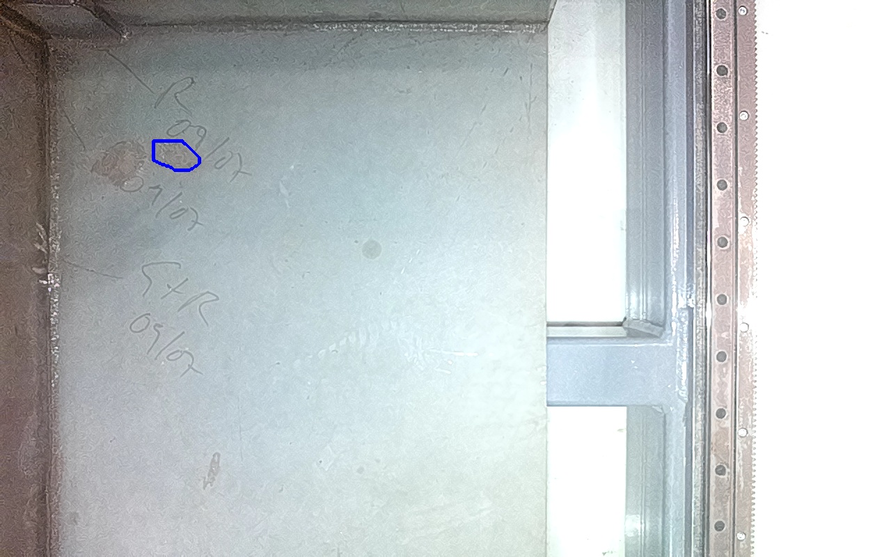 Rayaduras o zonas de metal expuestas con productos de óxido débilmente adherido. |