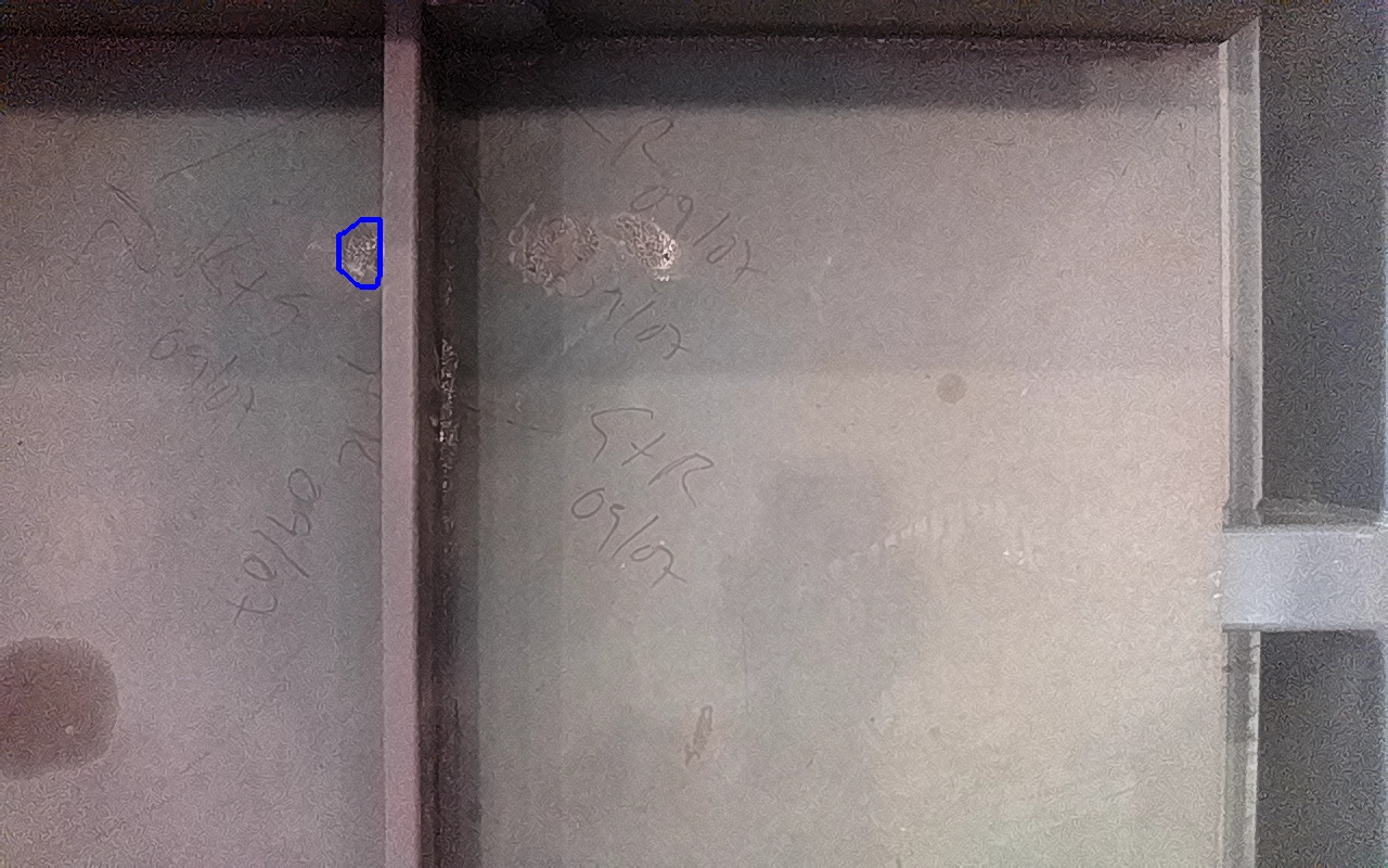 Rayaduras o zonas de metal expuestas con productos de óxido débilmente adherido. |