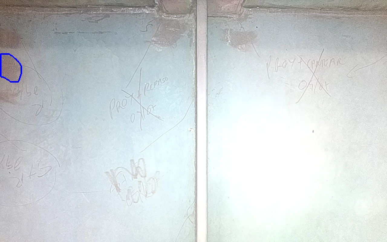 Rayaduras o zonas de metal expuestas con productos de óxido débilmente adherido. |