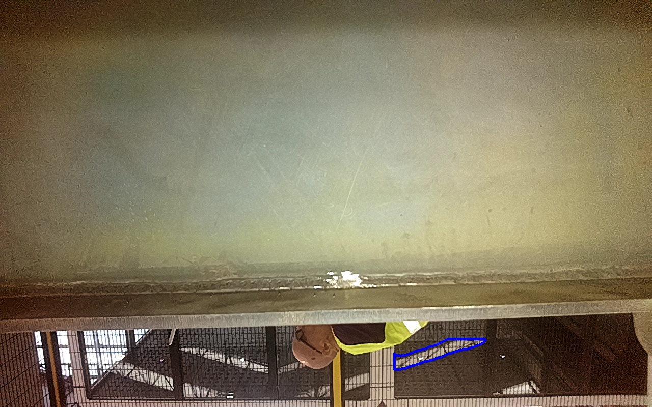 Rayaduras o zonas de metal expuestas con productos de óxido débilmente adherido. |