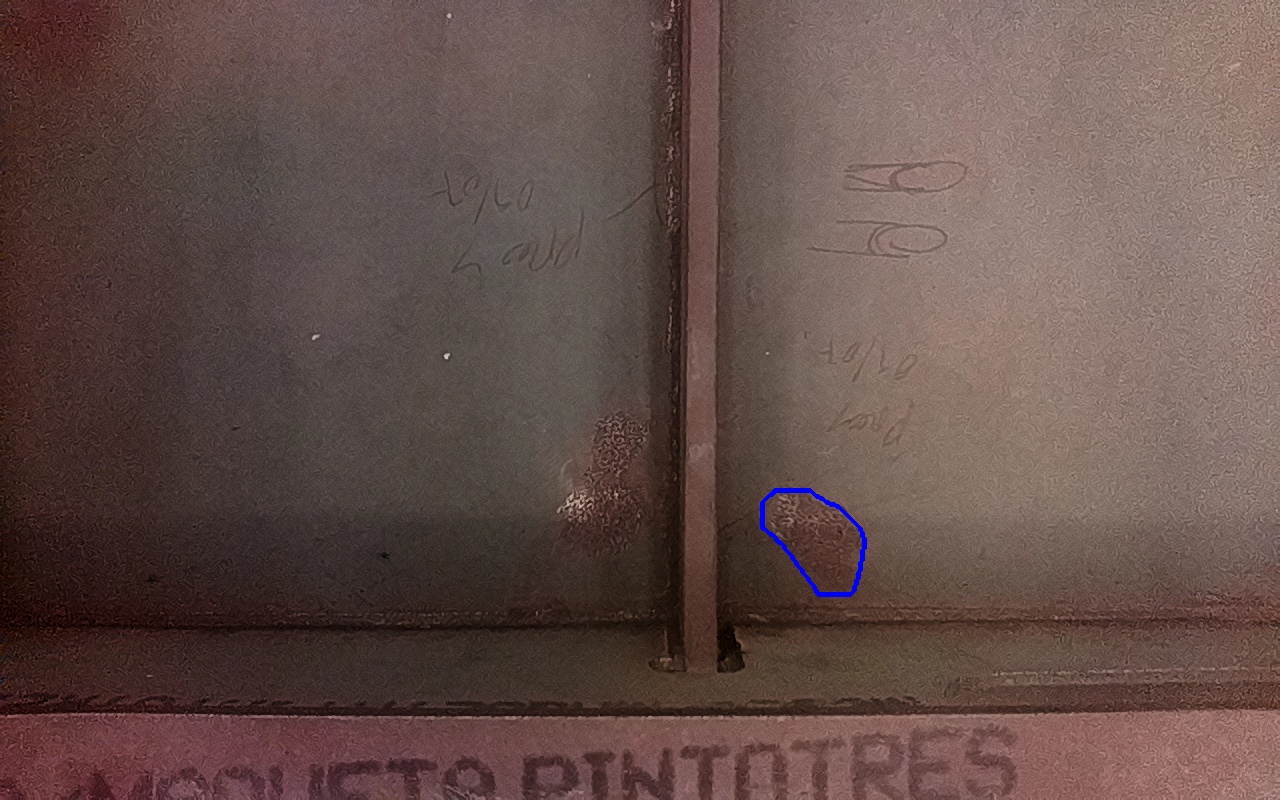 Rayaduras o zonas de metal expuestas con productos de óxido débilmente adherido. |
