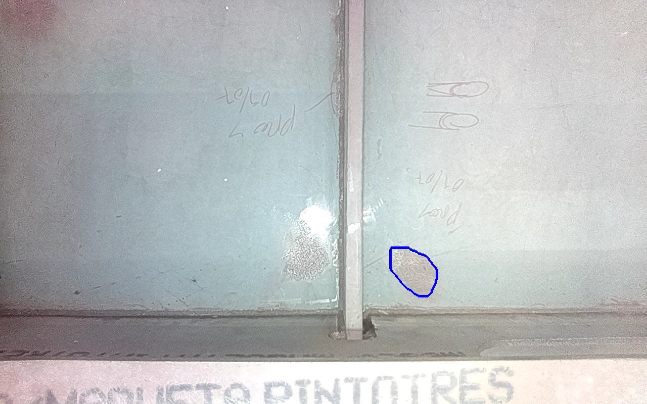 Rayaduras o zonas de metal expuestas con productos de óxido débilmente adherido. |