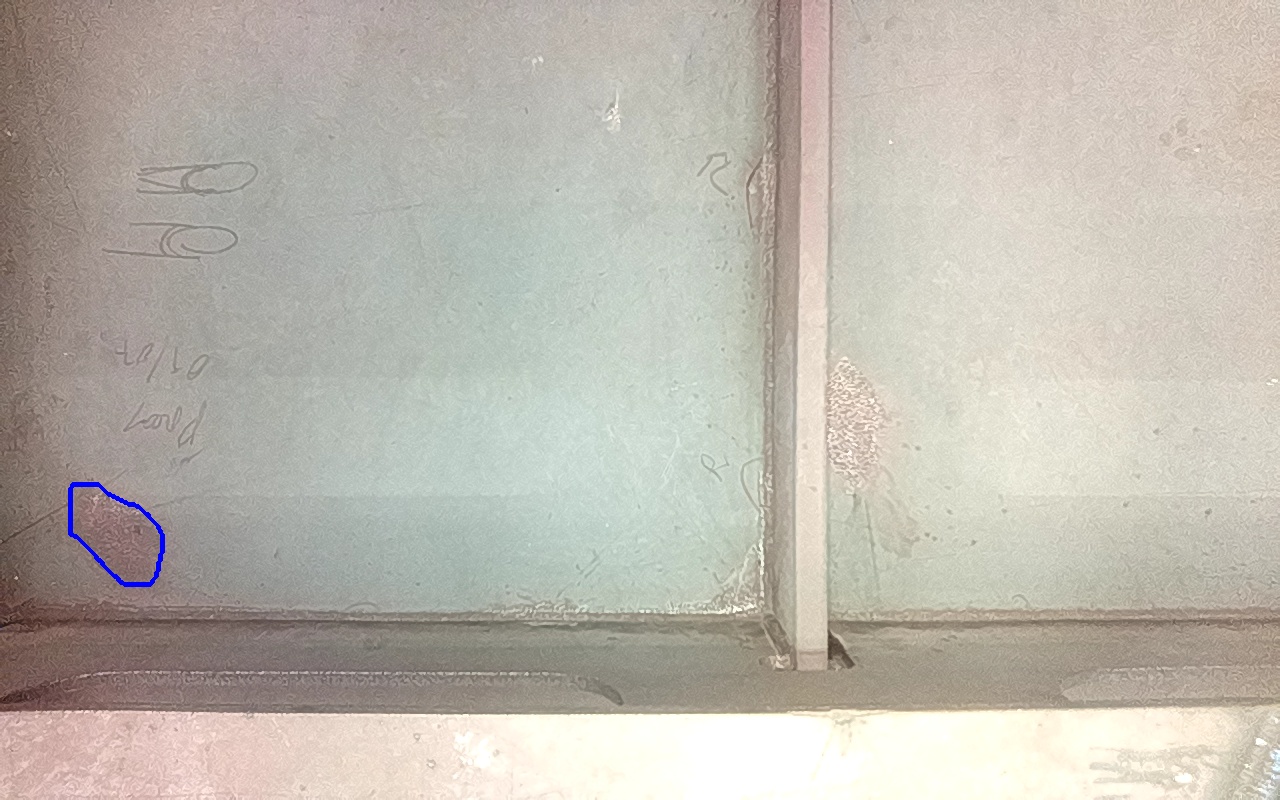 Rayaduras o zonas de metal expuestas con productos de óxido débilmente adherido. |