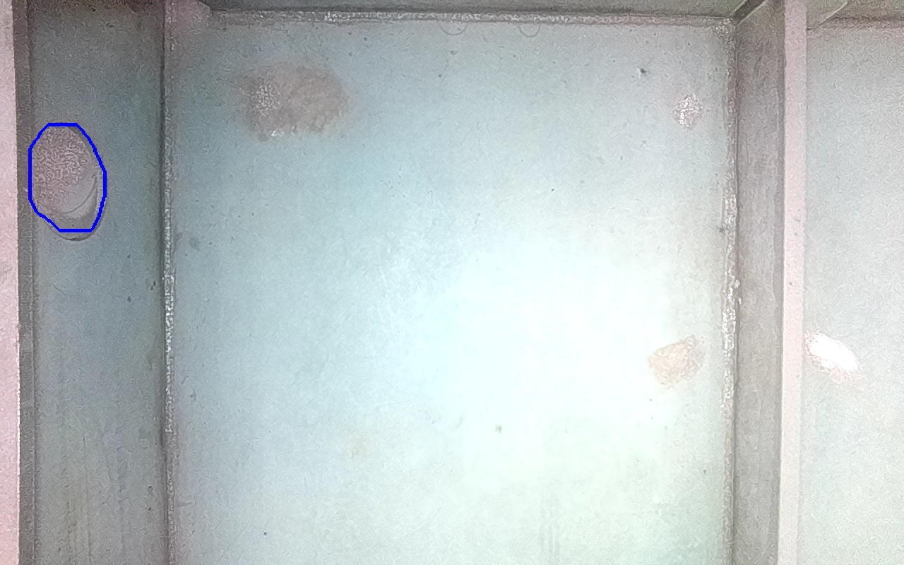 Rayaduras o zonas de metal expuestas con productos de óxido débilmente adherido. |