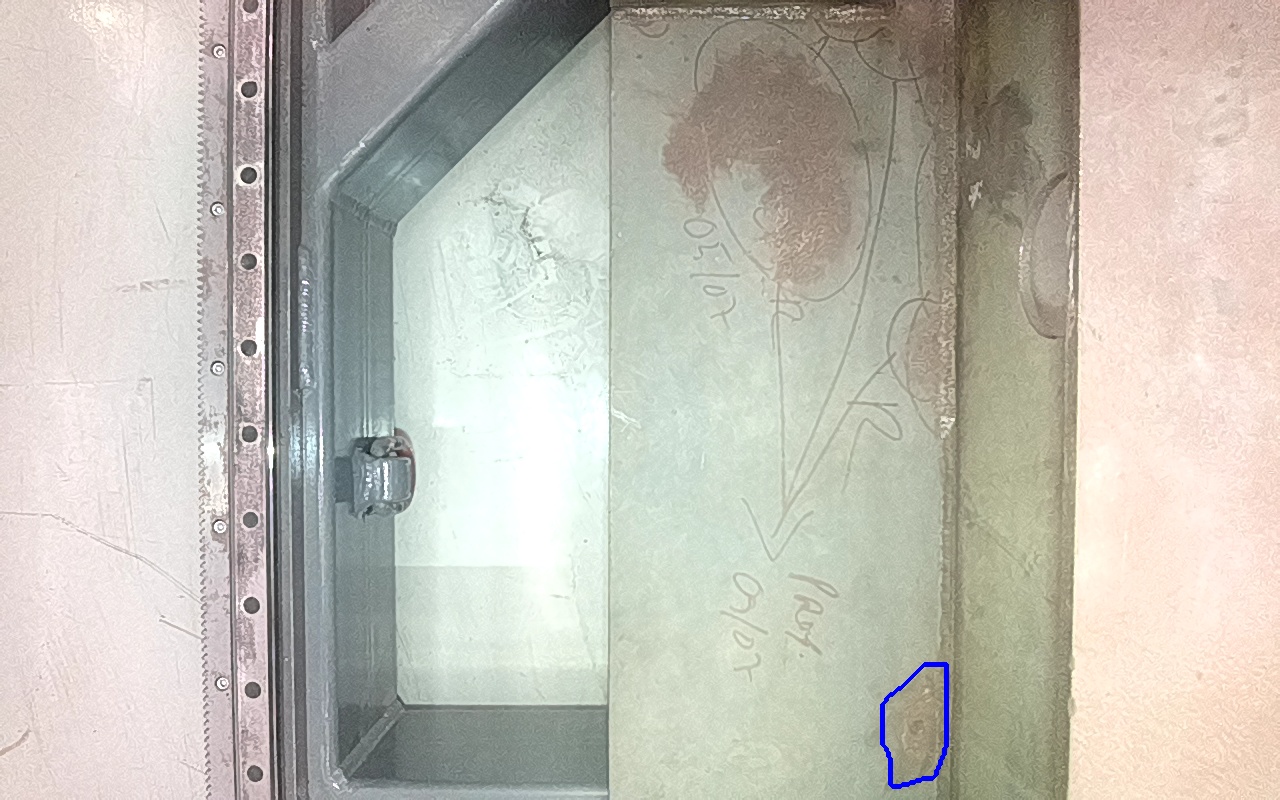 Rayaduras o zonas de metal expuestas con productos de óxido débilmente adherido. |