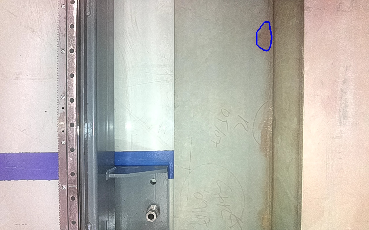 Rayaduras o zonas de metal expuestas con productos de óxido débilmente adherido. |