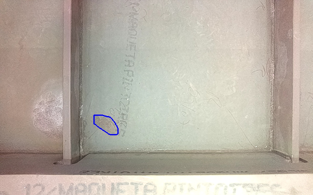 Rayaduras o zonas de metal expuestas con productos de óxido débilmente adherido. |