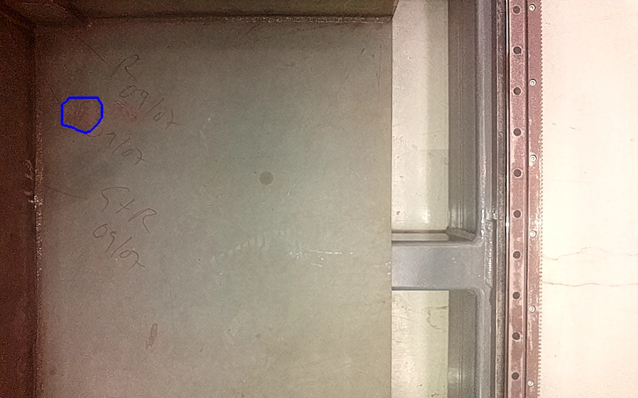 Rayaduras o zonas de metal expuestas con productos de óxido débilmente adherido. |