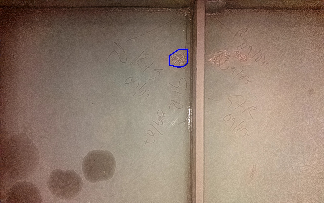Rayaduras o zonas de metal expuestas con productos de óxido débilmente adherido. |