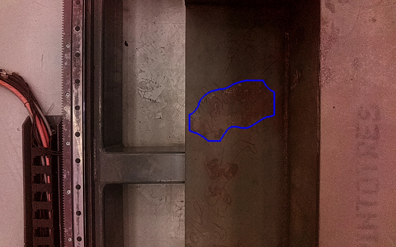 Rayaduras o zonas de metal expuestas con productos de óxido débilmente adherido. |
