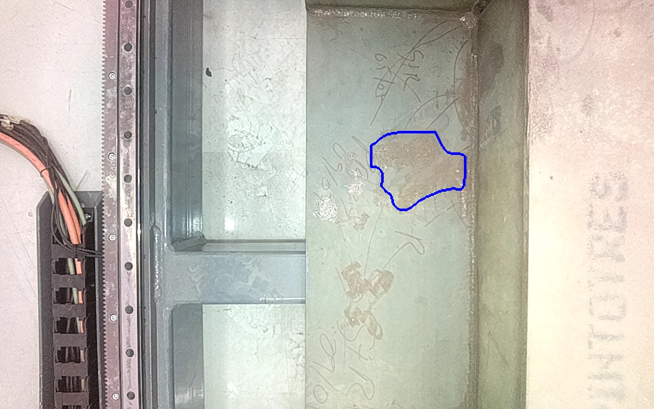 Rayaduras o zonas de metal expuestas con productos de óxido débilmente adherido. |
