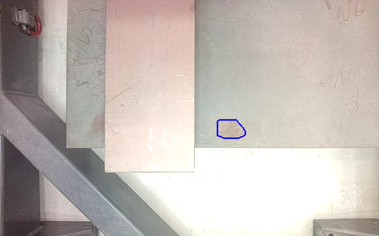 Rayaduras o zonas de metal expuestas con productos de óxido débilmente adherido. |