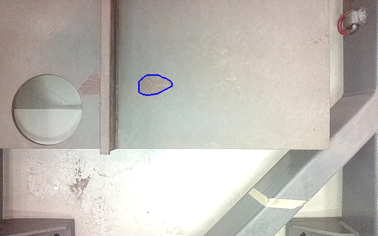 Rayaduras o zonas de metal expuestas con productos de óxido débilmente adherido. |