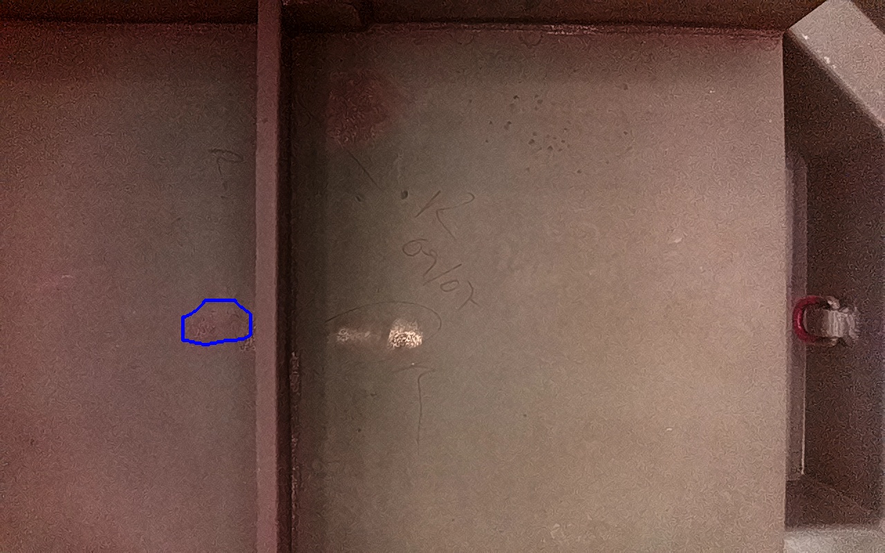 Rayaduras o zonas de metal expuestas con productos de óxido débilmente adherido. |