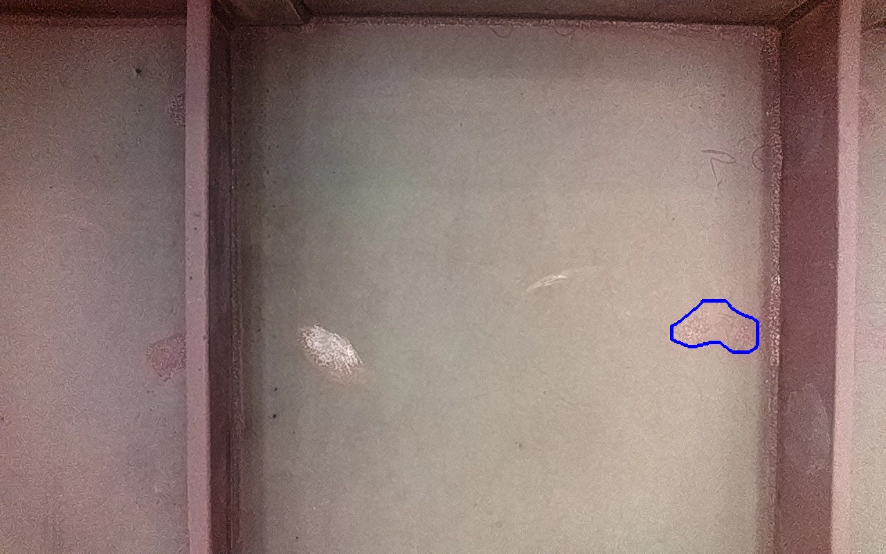 Rayaduras o zonas de metal expuestas con productos de óxido débilmente adherido. |
