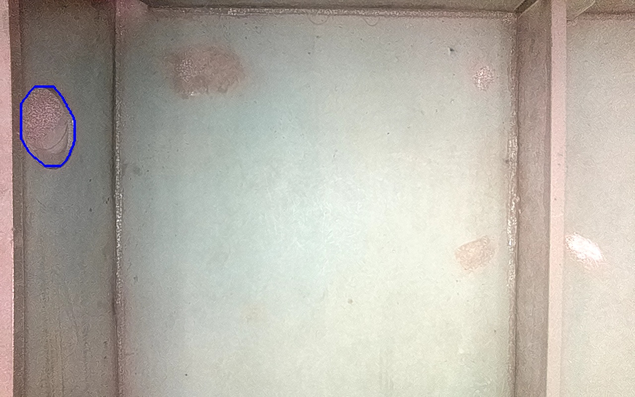 Rayaduras o zonas de metal expuestas con productos de óxido débilmente adherido. |