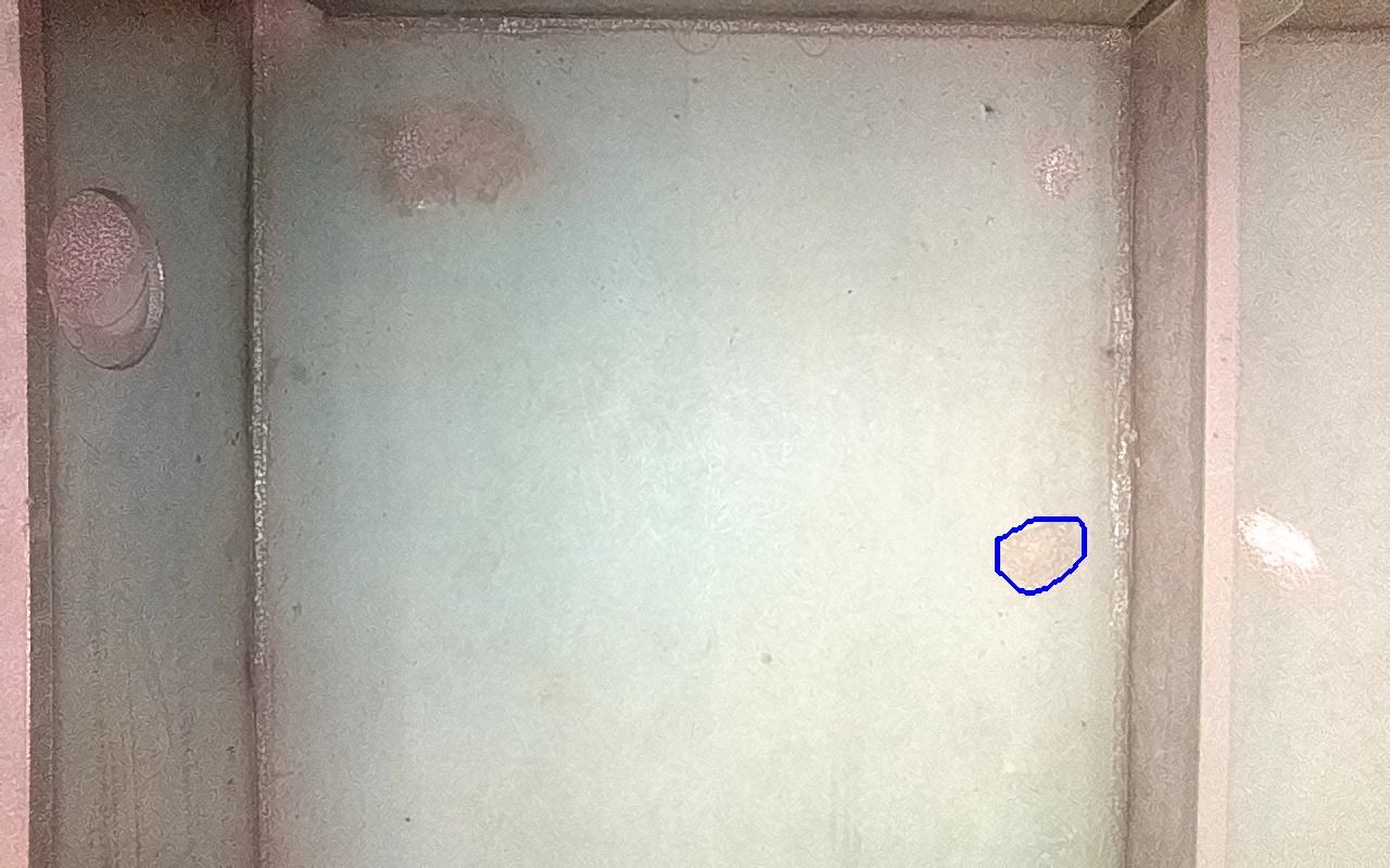 Rayaduras o zonas de metal expuestas con productos de óxido débilmente adherido. |