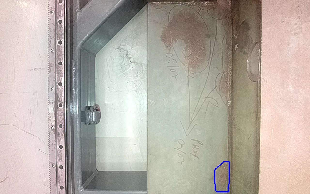 Rayaduras o zonas de metal expuestas con productos de óxido débilmente adherido. |