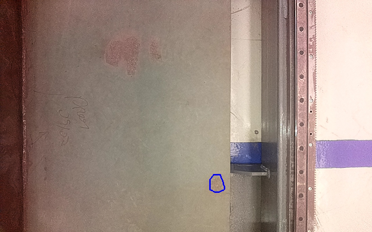 Rayaduras o zonas de metal expuestas con productos de óxido débilmente adherido. |