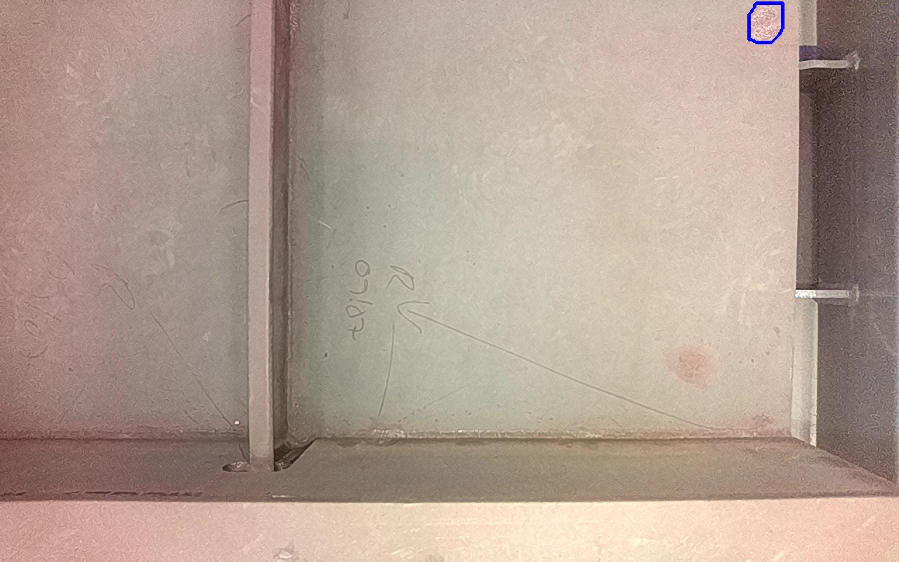 Rayaduras o zonas de metal expuestas con productos de óxido débilmente adherido. |