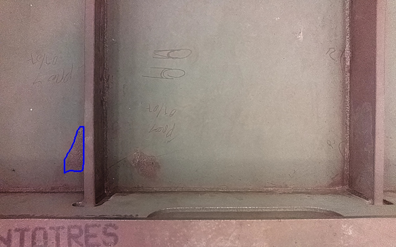 Rayaduras o zonas de metal expuestas con productos de óxido débilmente adherido. |