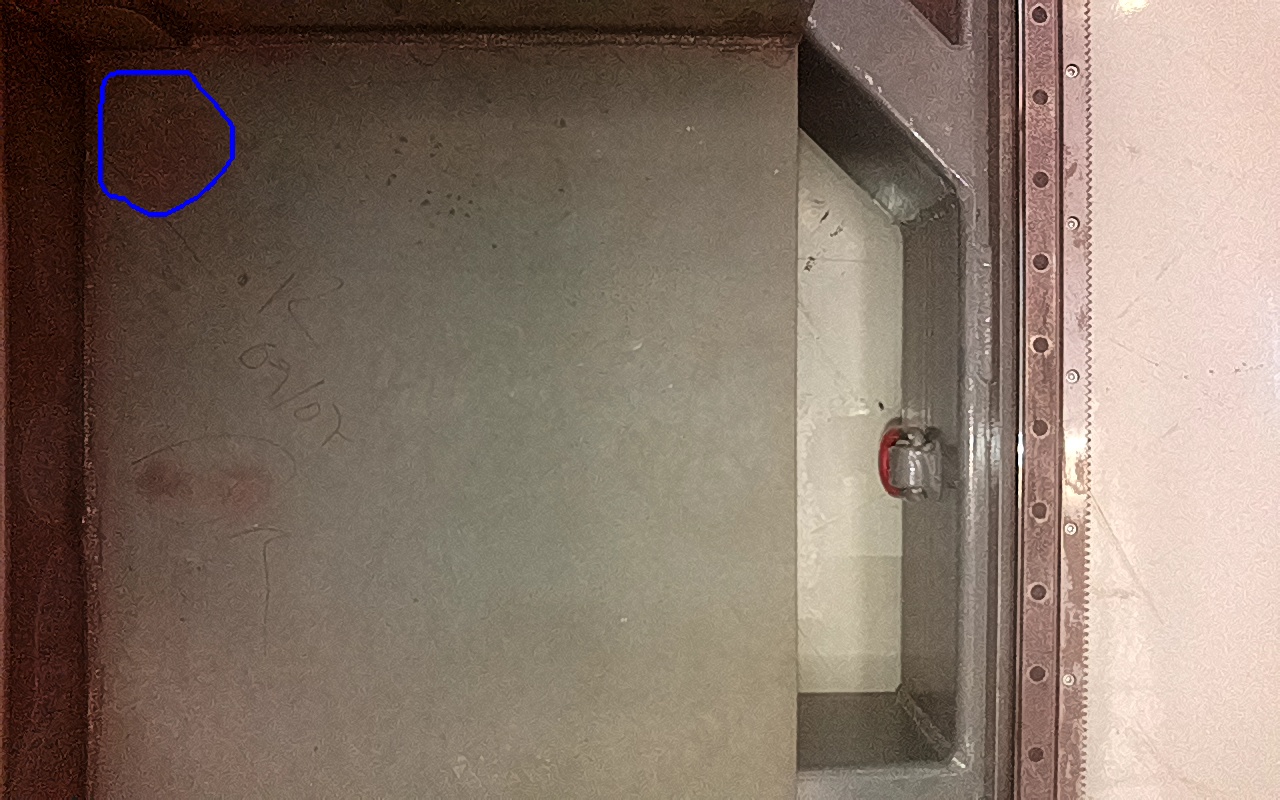Rayaduras o zonas de metal expuestas con productos de óxido débilmente adherido. |