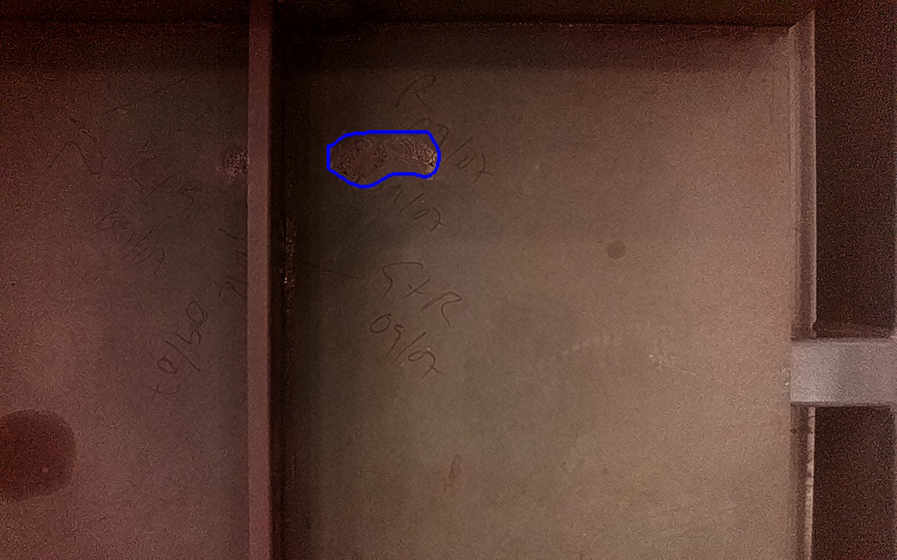 Rayaduras o zonas de metal expuestas con productos de óxido débilmente adherido. |